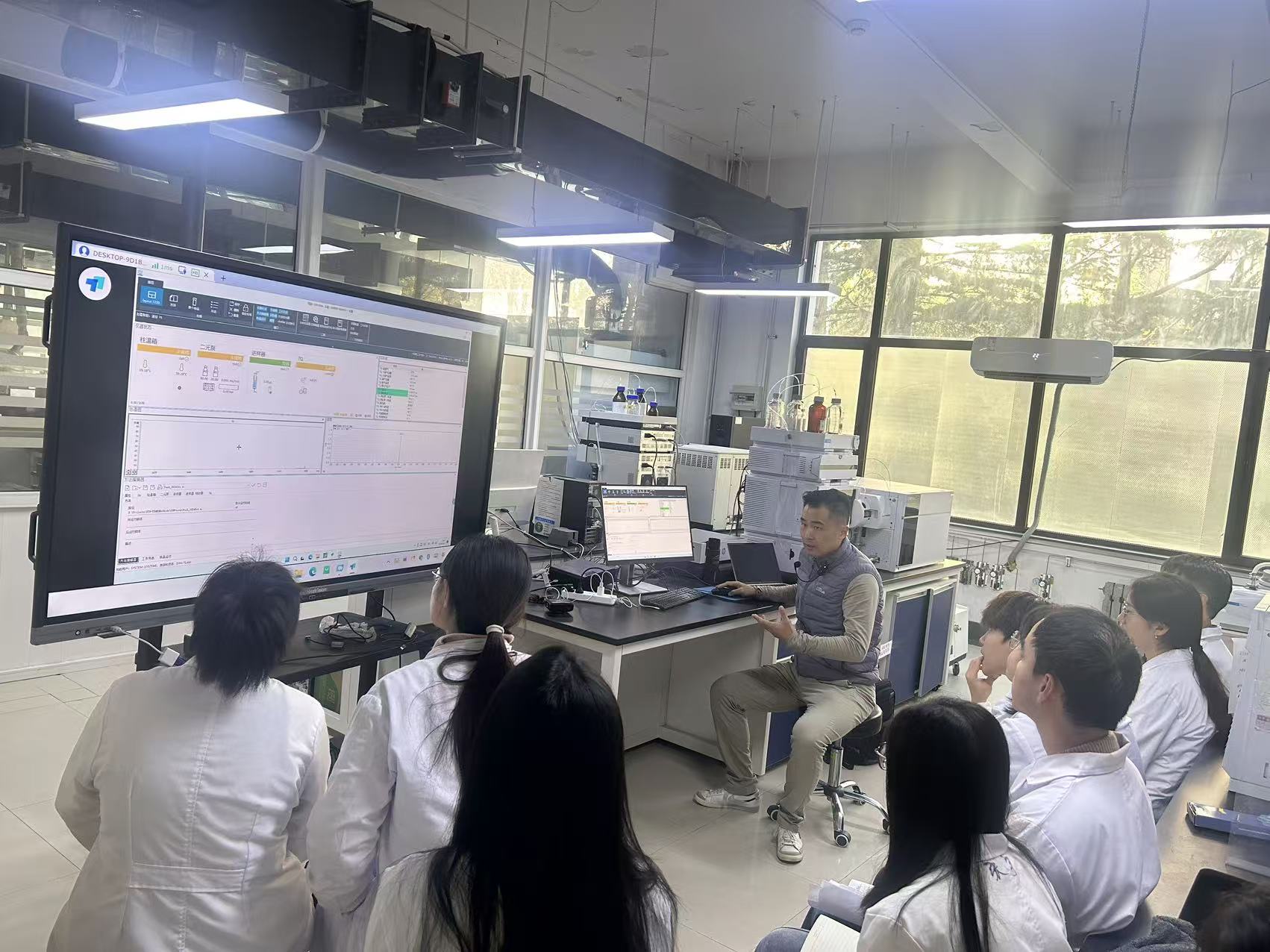 工程师讲解了仪器构造、测试原理、操作步骤、注意事项、数据分析等内容。参与培训的同学们现场进行了操作,工程师针对遇到的问题进行现场答疑。本次培训提高了学生对质谱方法开发的理解,学会如何在具体科研活动中规范化使用该仪器,取得了良好效果。