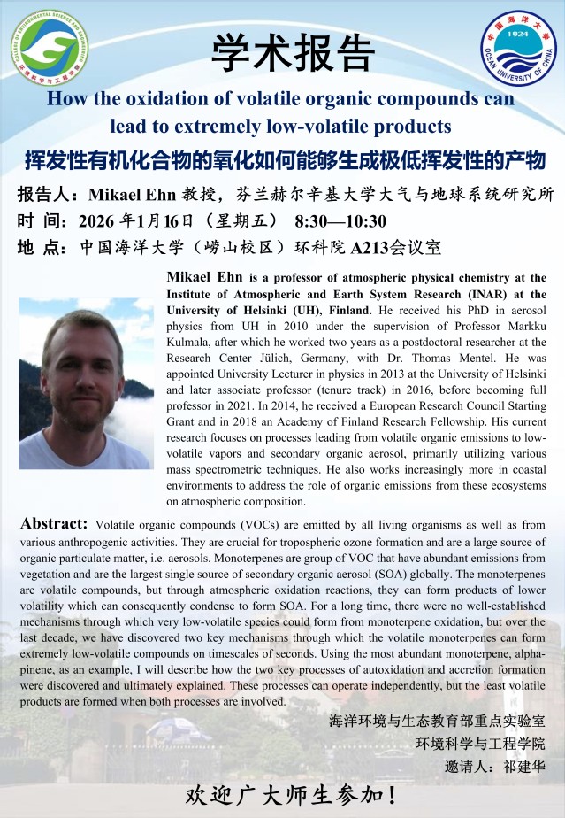 学术报告:挥发性有机化合物的氧化如何能够生成极低挥发性的产物